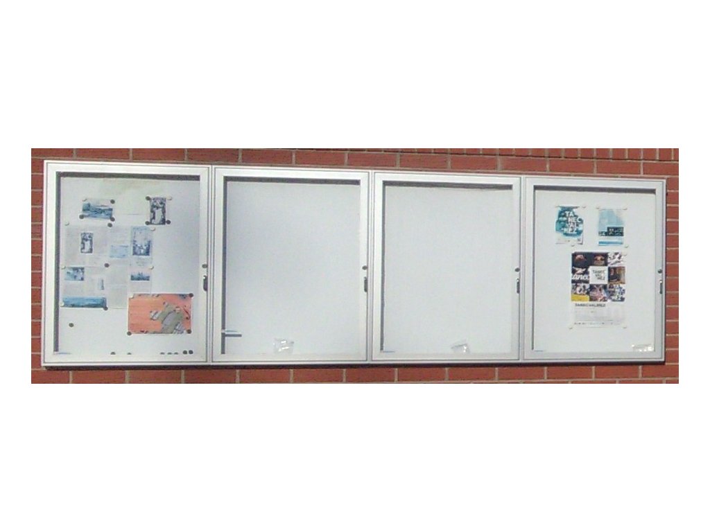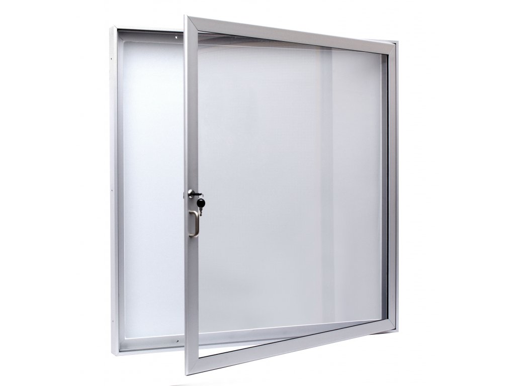 Venkovní vitrína v 1000 x š 750 x hl 40mm, 9xA4, hliníkový rám v barvě elox, otevírání křídlo, nerozbitný karbonát Lexan, uzamykatelná přiloženými klíči, magnetická zadní stěna. Možnost upevnění na stěnu nebo na sloupky.