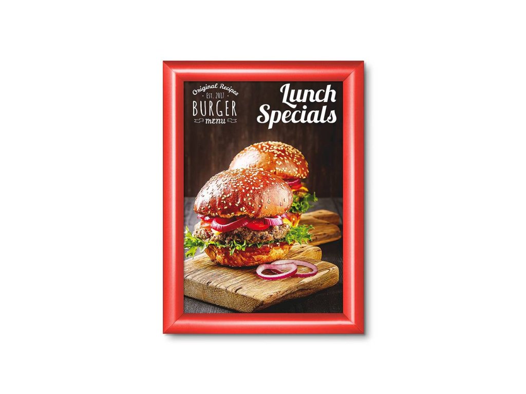 Klaprám A4, ostrý roh, profil 25mm, barva RAL 3020 červená